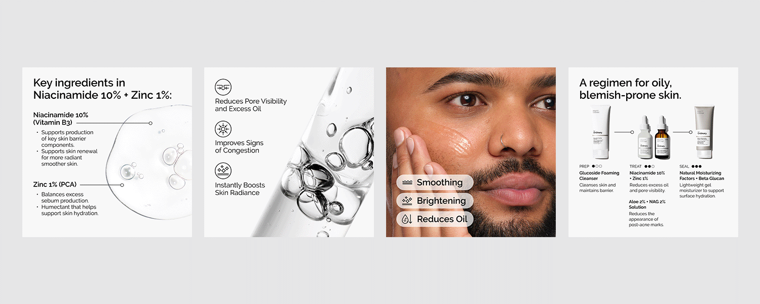 Design and art direction work for The Ordinary, a global and innovative skincare brand, across retail, regional launches, global brand guidelines, photography, OOH, and digital touchpoints.